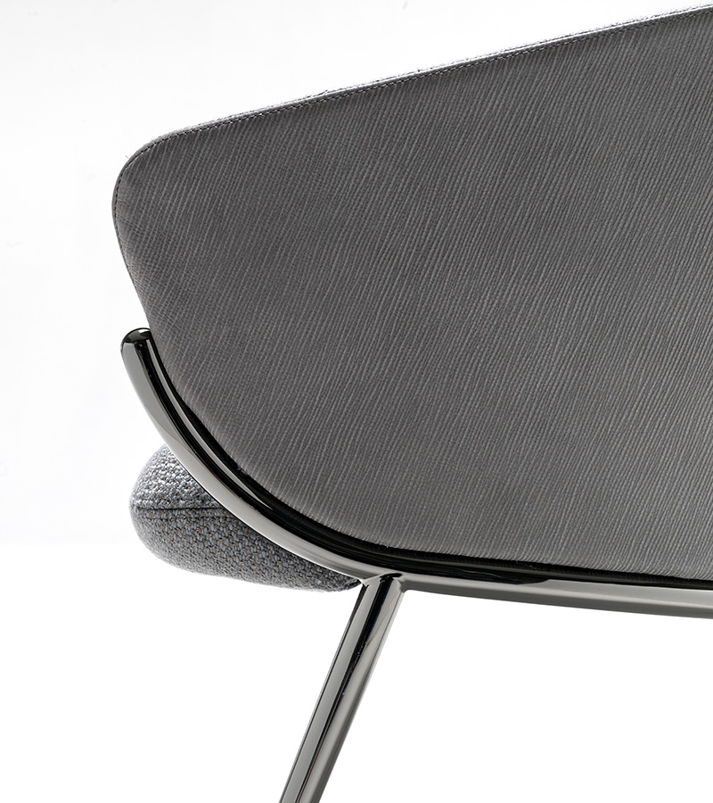Chair in birch wood, upholstered with differentiated density, with legs in polished black nickel.