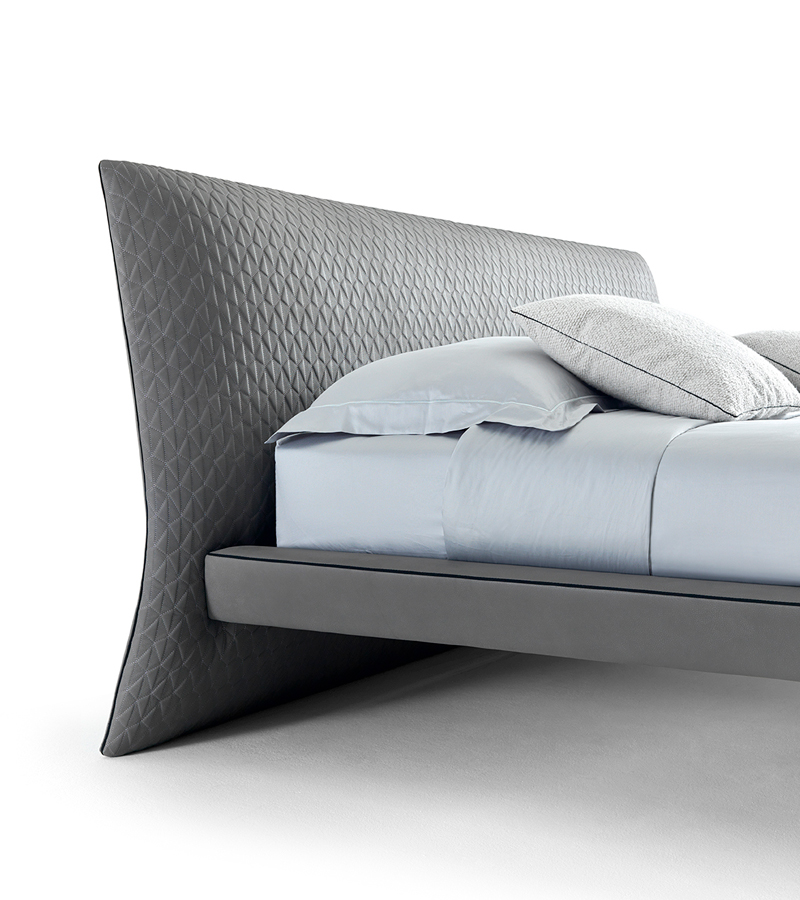 Bed upholstered, feet in polished black nichel. Upholstery as photo: leather, in original “Ceppi The Italian touch” quilted leather.