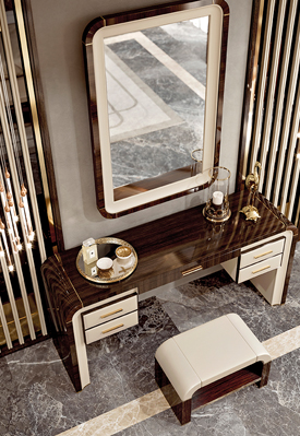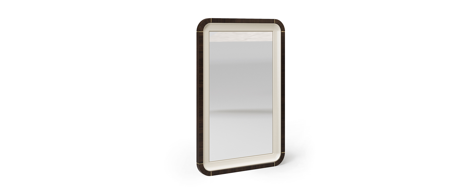 Specchiera in Eucalipto lucido con inserti ottone e laccatura.